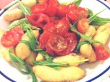ですので、ピッツァだけでなく、ナポリ風ピッツェリアのアンティパストに挑戦したい人には、フリッタティーネ(ミートソース、プローヴォラチーズと和えたスパゲッティを手の平サイズにまとめて、パン粉をつけて揚げたもの)、カボチャの花の詰物(こちらも揚げ物)、アンジョレッティ(ピッツァの生地を細長く切り、揚げてある)をトマトとルーコラで和えたものなどもあります。