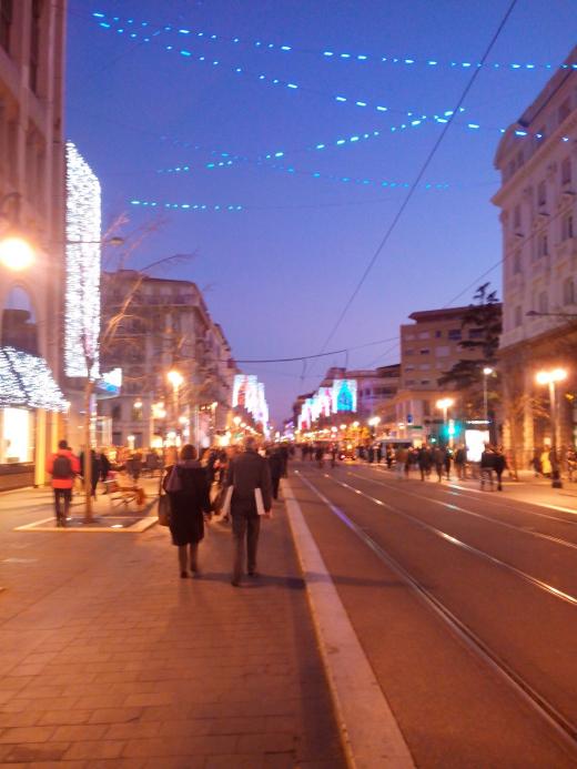 ここはニースでも車通りが多く、長距離バスの通る道だったり、道がまっすぐなので車が少ない夜間や早朝などはスピードを出しやすい道でもあります。にもかかわらず、有名なホテルが並んでいたり、海があったり、カジノがあったり、一年中賑わっている通りでもあり、常に人が多く行き来する場所です。
