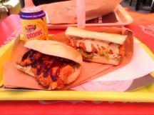 20種ほどもあるアメリカンホットドッグの中のスター格はテキサスドッグ(1150xpf)。