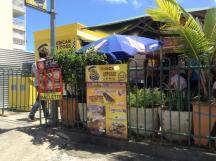 どちらの道から来ても看板が出ているのですぐ分かるはず。ポップな黄色いフードトラック風の店構えがユニーク。