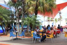 ローカルの人たちは買い物のあとは併設されているカフェで一休み。