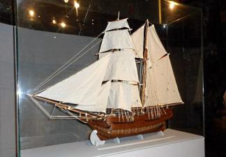 ・ニューカレドニア内の航海について。1953年にマレ島出港後消息を絶った沿岸航海船モニック号の模型が。