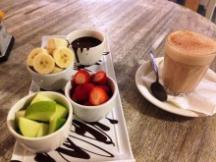 お店にはいつもチョコレートを溶かしたフォンデュがあり、チョコレートディップとしてフルーツやチュロスにつけて