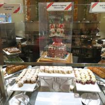 食事の内容は、基本的にどの時間帯もアメリカン料理のビュッフェスタイルです。朝食にはミッキーの形のワッフルや、オムレツ、ソーセージ、ベーコン、フルーツやヨーグルトなど。ランチはパスタやチキン、ポーク、ロブスターと海老のマカロニチーズ、そして個人的におすすめなのは、サーモン!メープルと粒マスタードが味付けしてあるので、ほんのり甘く粒マスタードと絶妙なバランスがやみつきになります。デザートも小さめのケーキやタルト、クッキー、フルーツなど種類が豊富です。朝食かランチどちらにしようか迷っている方は、是非ランチをお試しになると良いかもしれません!