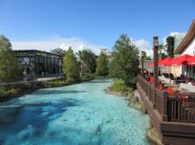 ディズニースプリングス内は白っぽい建物で統一され、全体的にリゾートのような雰囲気が味わえます!「スプリングス」は泉という意味なので、その名の通り敷地内には青く美しい泉や噴水があり、橋を渡ってエリアを移動するなど、散策するだけでも楽しめます。