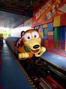 2つ目は「エイリアン・スワーリング・ソーサー」。『トイ・ストーリー』1作目でアンディがピザプラネットでもらったおもちゃセットをイメージしたアトラクション。大きなバズのオブジェが目印です!''The Claw"ロケットに乗ってクルクルと回転します。乗り終わった後少しフラフラしてしまいましたが、トイ・ストーリー好きにはたまらないアトラクションです。