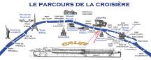 船には19:45からチェックインできる。20:30までに着けない場合には予約キャンセルと見なされ、席は他人に取られるので要注意。20:45に桟橋を離れ、21:00に出航する。2時間かけて、ゆっくりセーヌ川を芸術橋から、ポン ナフ、シテ島、ノートルダム、エッフェル塔まで周り、元の波止場に23時に戻ってくる。