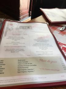 観光客が多いお店だからなのか、メニューはフランス語と英語で記載されています。リーズナブルな日替わりメニューもあるのが、大衆食堂っぽいところ。支払いも、現金のみです。