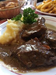 こちらでのおすすめは、牛肉の赤ワイン煮。ほろほろになるまで煮込んだ牛肉は、口に入れたらとろけてしまうほど! 付け合わせのマッシュポテトと一緒に食べると、本当にお腹いっぱいになります。