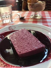 定番人気のデザートは、カシスのムース。こちらのデザートは、セットメニューで選ぶことができます。濃厚なカシスのソースと、しっかりカシスの味と色が効いたムースが一緒にサーブされます。フォトジェニックなので、写真撮影も忘れずに。