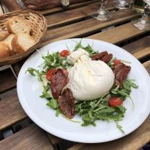 オススメは、新鮮さが命の水牛のモッツァレラチーズ「ブッファラ」のサラダ(12ユーロ)! オリーブオイルと塩のみで頂く究極のシンプルメニューは、日本では味わえない美味しさです。