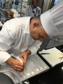 シェフはフランス人なので、フランス語と英語での解説です。通訳の人がいるので、英語でも十分に意思の疎通ができます。調理器具は家庭にないようなものを使うので、解説を聞きながら使うことになります。