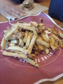 ハンドカットしたポテトのフレンチフライに、ローズマリーなどのハーブとさらにパルメザンチーズをたっぷりふりかけて食べる”ラルド・フライズ”($5)も定番人気。さらにベーコンとピーマンを加えた”ダーティー・フライズ”($9)はボリュームもたっぷり。ラルドラガーなどクラフトビールも出しているので、フレンチフライは、おつまみにぴったりだ。