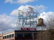 橋の上からは、ポートランドの絵葉書やポスターなどにも登場する「ポートランド オレゴン」の看板がよく見え、サインとの記念写真のベストスポットになっている。夜間はライトアップされるが、歩いての撮影なら、治安的に明るいうちが無難かも。クリスマスシーズンは、トナカイに赤い鼻がライトアップされるのも可愛い。