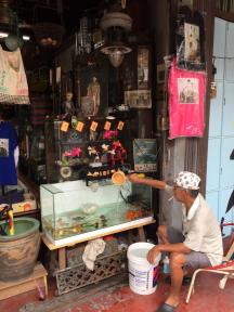徒歩でお店まで行く途中、中国寺院やアクアリウム&ペットショップに