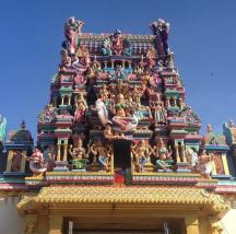1883年建立のヒンドゥー寺院で、入口上方のゴプラムと呼ばれる塔には38体の神々が祀られています。その見事な装飾には驚きです。(取材日:2013年07月頃)