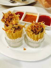 特に有名な前菜のパイティ(Paiti)(RM3.9)はお薦め。パリッとしたパイのような生地の中に、大根や人参などのお野菜の炒め物が入っていて、3つのソースで味わいます。特に美味しいのは、サンバルブラッチャというエビミソベースのピリ辛ソース。ちょっとつけるだけでも、エビの香りが口の中に広がり、また、お野菜との相性もばっちり。その後の生地のパリパリ感がなんとも美味しいです。前菜料理となってます。