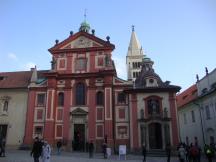 白い2つの尖塔が印象的なプラハ城内にある最古の教会