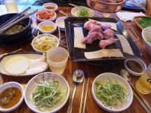 メニューは簡単! 金海ティッコギとコプテギ(豚の皮)のみ!