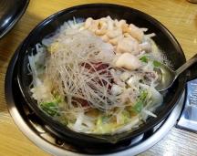タコとホルモン、海老の他に野菜やタンミョン(春雨のようなでんぷんの乾燥麺)がのって出てきた鍋を、しばしグツグツと煮込みます。