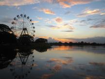 観覧車とゴルフの練習場、湖の対岸にはアウンサンスーチー邸を臨むことが出来、落ち着いた雰囲気です。湖に沈む夕景がきれいなのもこちら側。