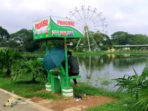 日中、湖畔のベンチはすべて、傘をさしたカップルに占拠され座ることは出来ません。