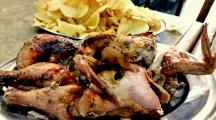 老舗店で食べる若鶏の丸焼き