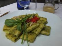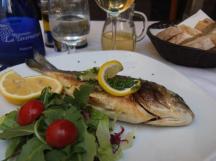 私はバジルソースのジェノベーゼのパスタと、お頭つき鯛のグリルを注文しました。