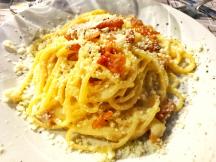 ローマ料理の定番、カルボナーラ。クリーミーであっさりめの味付け