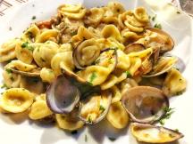 「海の幸と山の幸のオレッキエッテ(アサリとポルチーニ茸のフレッシュショートパスタ)」13ユーロ