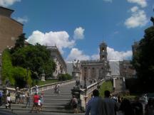 左手にカピトリーノ美術館、正面にローマ市庁舎(セナトリオ宮)が建ち並んでいます。