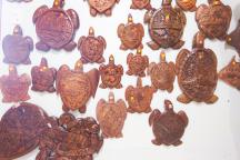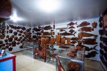 ジュゴンやイルカ、エイやカメ、サメなどパラオの生き物の中にパラオのストーリーがおおらかに彫られていて、唯一無二の彫刻作品に出会えます。