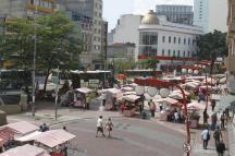 地下鉄Liberdade駅前のリベルダージ広場(Praça da Liberdade)から右側に出て真っすぐ下って行くと、目抜き通りであるガルボン・ブエノ通り(Rua Galvão Bueno)がある。日系のスーパーなどが並んでいて、ブラジル人も普通にカレー粉や焼きそばなど日本食材を買っていくから面白い。少し先に行くと、大阪橋という橋があり、鳥居が立っている。また、信号には提灯などの模様が施されていて日本らしくしているよう。残念なことだが、この周辺は人も多く、スリなども多いようだ。リベルダージ駅から見てガルボン・ブエノ通りの一本先のグロリア通り(Rua Gloria)、ガルボン・ブエノ通りを下っていき、日本人移民資料館が角にあるサン・ジョアキン通り(São Joaquim)以降は柄も良くないので周りの雰囲気も見ながら行き過ぎないようにしたい。