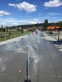 気温の高い日は、平日も週末も、水着やパンパース姿の小さな子供が、キャーキャーと声を出して笑いながら、はしゃいで、ひたすら水の間を行ったり来たりしている様子に癒されます(´∀`)