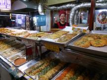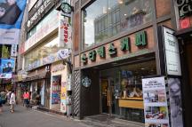 都会的な高層ビルが立ち並ぶ孔徳駅付近には、下町情緒あふれる庶民派食堂や在来市場が共存し、特に「チヂミ横丁」は大人気です。店先に色々な種類のチヂミがずらっと並んでいます。そこから自分が食べたいものをチョイスしておばちゃんに渡します。その後店内に入り飲み物を注文して待っていると、まずは飲み物と多数のおかずが出てきて、さらに少しすると先ほど渡したチヂミが温め直され食べやすい大きさに切られてテーブルに運ばれてきます。