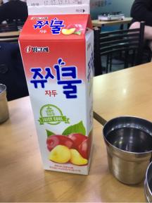 でも辛い!!という時には、ほとんどの人が注文しているという 쥬시쿨 / ジュシクル(ピーチネクターのようなジュース)2,000ウォン を注文して飲むと辛さが和らぎますよ♪
