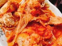 長期間、熟成させたキムチを使用するので酸味を感じますが、柔らかく煮込まれた豚肉と一緒に食べることで酸っぱさが緩和され、口の中に旨みが広がります。