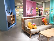 1階は新商品や人気商品を中心にディスプレイされていて、2階はモバイル用品や衣服、文房具、ぬいぐるみ、旅行用品など本当に様々なグッズが販売されています。3階は人気キャラクターのライアンのカフェになっていて、買い物の疲れを癒すこともできます。