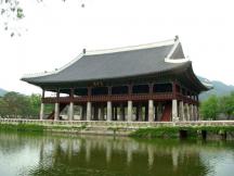 国宝第223号に指定されている本宮の勤政殿(クンジョンジョン)は、韓国最大の木造建築物で天井中央などに描かれた龍や丹青が見物。
