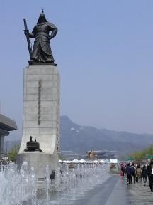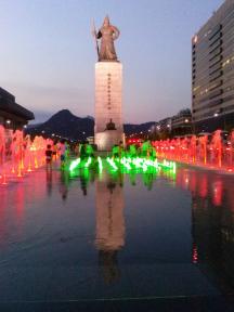 市役所から景福宮までの約550mの間に、噴水、歴史を刻んだ石、2大英雄の銅像があり、