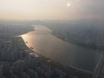 地上500メートルの眺めが眼下に広がり、夕暮れ時のソウルと雄大な漢河がキラキラと輝いていて、それはもうファンタスティック!!