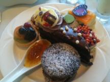 プライムリブステーキやチキン、ラム肉などの肉料理や飲茶、果物やデザートがあります。
