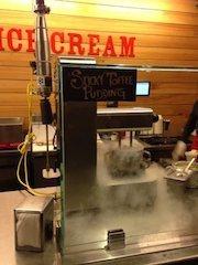 オーダーが入ると材料を製造機に入れ待つこと1分間。あっという間にアイスクリームの出来上がり!