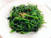 ベトナム料理の定番、空芯菜はガーリックの味が効いていて