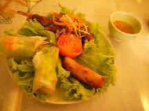 アペタイザーは欲張りな一品で、生春巻き、揚げ春巻き、そしてレモングラスに豚肉が巻かれたものが、1~2品ずつレタスの上に盛られている。盛り付けも綺麗で、ベトナム料理を見た目にも楽しめる。チャーハンは、キムチ風味。コムタム(南部で庶民に人気のある砕いた米)を使っており、スルスルと口に入って食べやすい。