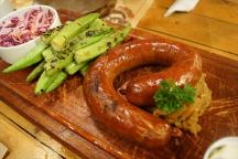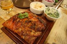 お店は、打ちっぱなしのコンクリートの壁に木製のテーブルが置かれた、ウェスタンスタイルを感じさせる内観。メインの肉料理は15万ドン(およそ750円)以上の価格帯がほとんどで現地では高めに感じるが、ボリュームは大したもので2,3人で食べられるので、実はお値打ち価格。骨付き肉も太いソーセージも食べごたえがあり、ヘルシーな料理が多いベトナムの中にあって非常にうれしいお店だ。サイドメニューも、マッシュポテトやチーズの盛り合わせなどと充実している。