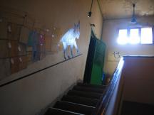 その上、入ってすぐに階段なので、まずそこにカフェがあると知らなければ「怪し気なところだ」と思って入らないだろう。しかし、勇気を出して三階まで上がってほしい。壁に描かれたサイケデリックな猫に導かれ、焦げ茶の重厚な扉を開くと、素敵な空間があなたを待っている。