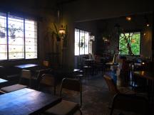 古アパートの一室をリノベーションしたカフェで、私達にとっては学校を思い出すようなデザインのイス、天井から下げられたブリキ製のランタンなど、インテリアへのこだわりを感じられる。3つの大きな窓で存分に採光が図られており、実際の空間以上に、広さを感じられることだろう。
