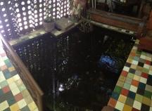 緑に覆われたお店は、まずそこに店があると知らなければ素通りしてしまうかもしれない。小さな四角い池に挟まれたカラフルなタイルを通り抜けてドアを開くと、どこからともなく聴こえてくるベトナム歌謡。日本の時代でたとえるなら美空ひばりといった往年の昭和のスターたちを思わせる歌声があなたの耳をタイムトリップさせる。