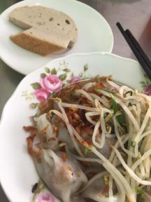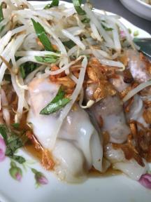 中国の腸粉、と言う料理に似ていて、それには海老などの海産物も使われるのですが、こちらのお店では具材が豚肉メインなのが特徴。お肉がタップリ入っているので味覚的には充分ボリュームを感じるのですが、生地の部分の消化が良いため、胃に負担が少なく、朝食や、食べ歩きの最中の一品としても活躍してくれます。一食30,000ドンくらいなのでお財布にも優しいですね。